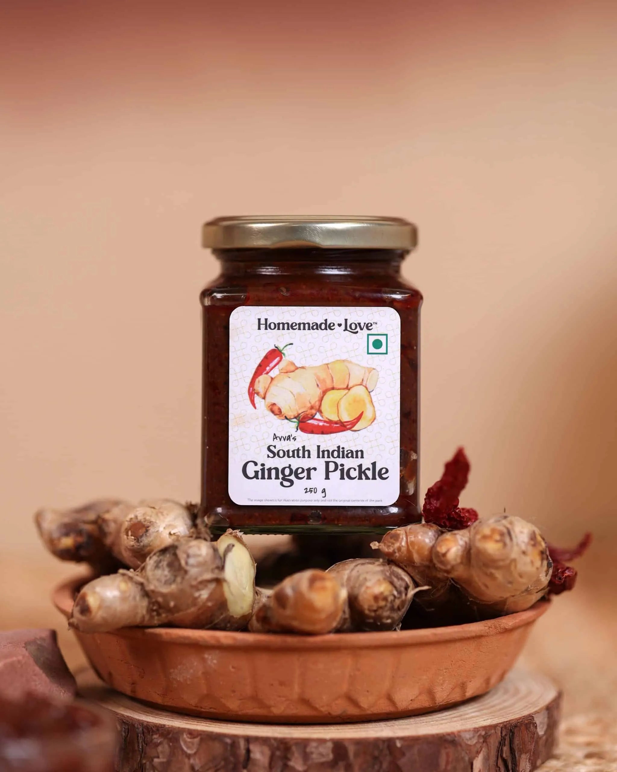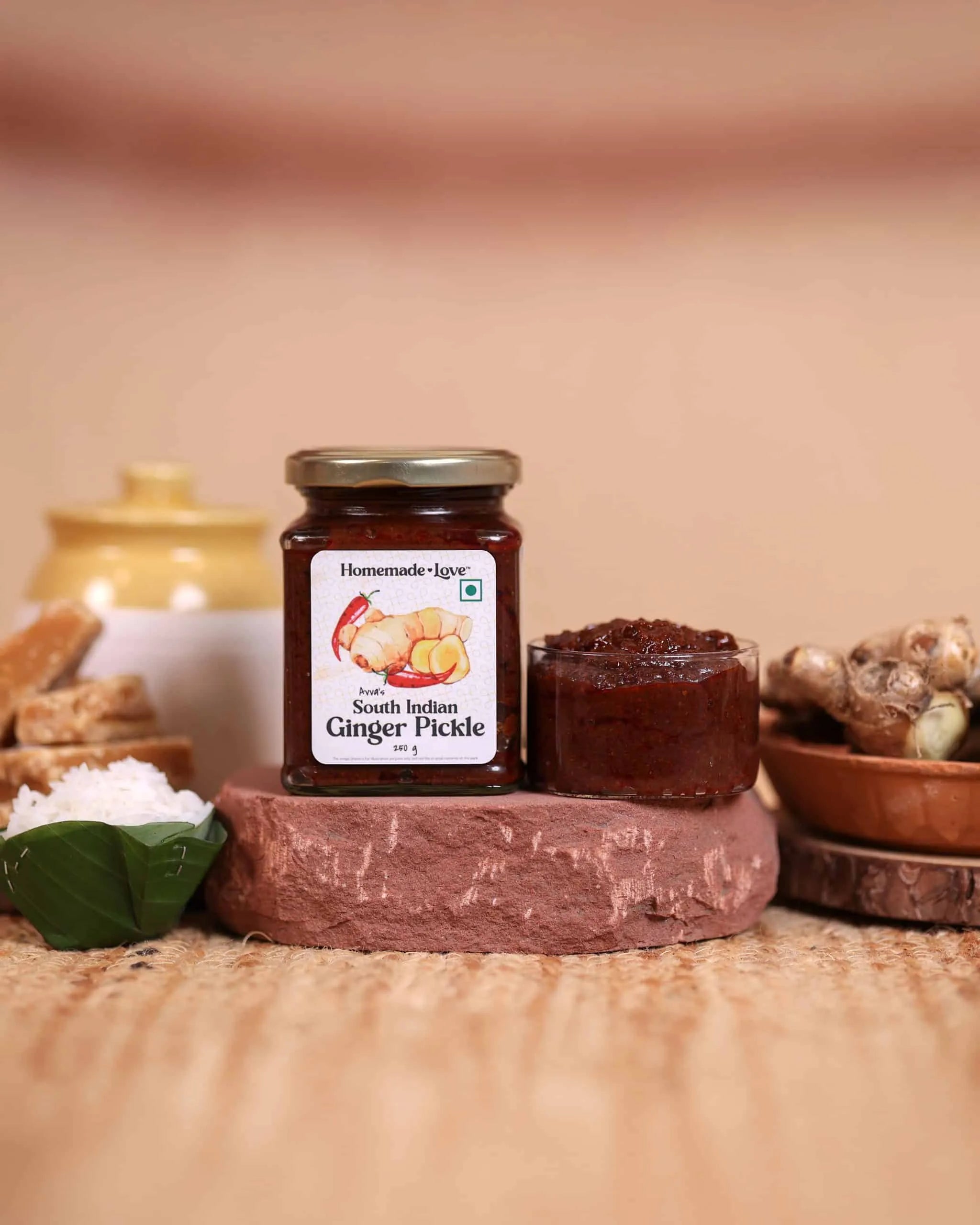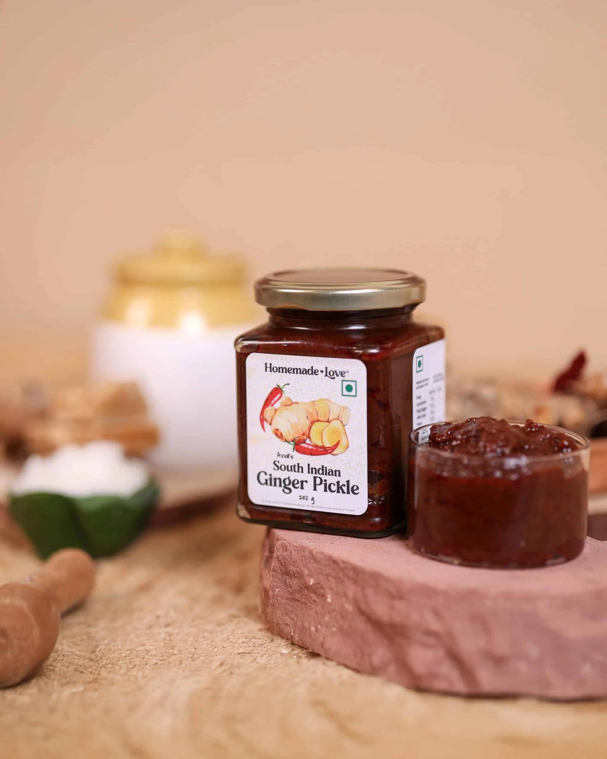 Delight your taste buds with the robust and earthy flavors of Homemade Love’s South Indian Ginger Pickle. A true gem of South Indian cuisine, this pickle is crafted using fresh ginger, a medley of traditional spices, and pure sesame oil. Known for its zesty and warming flavor, it’s a perfect accompaniment to enhance any meal.