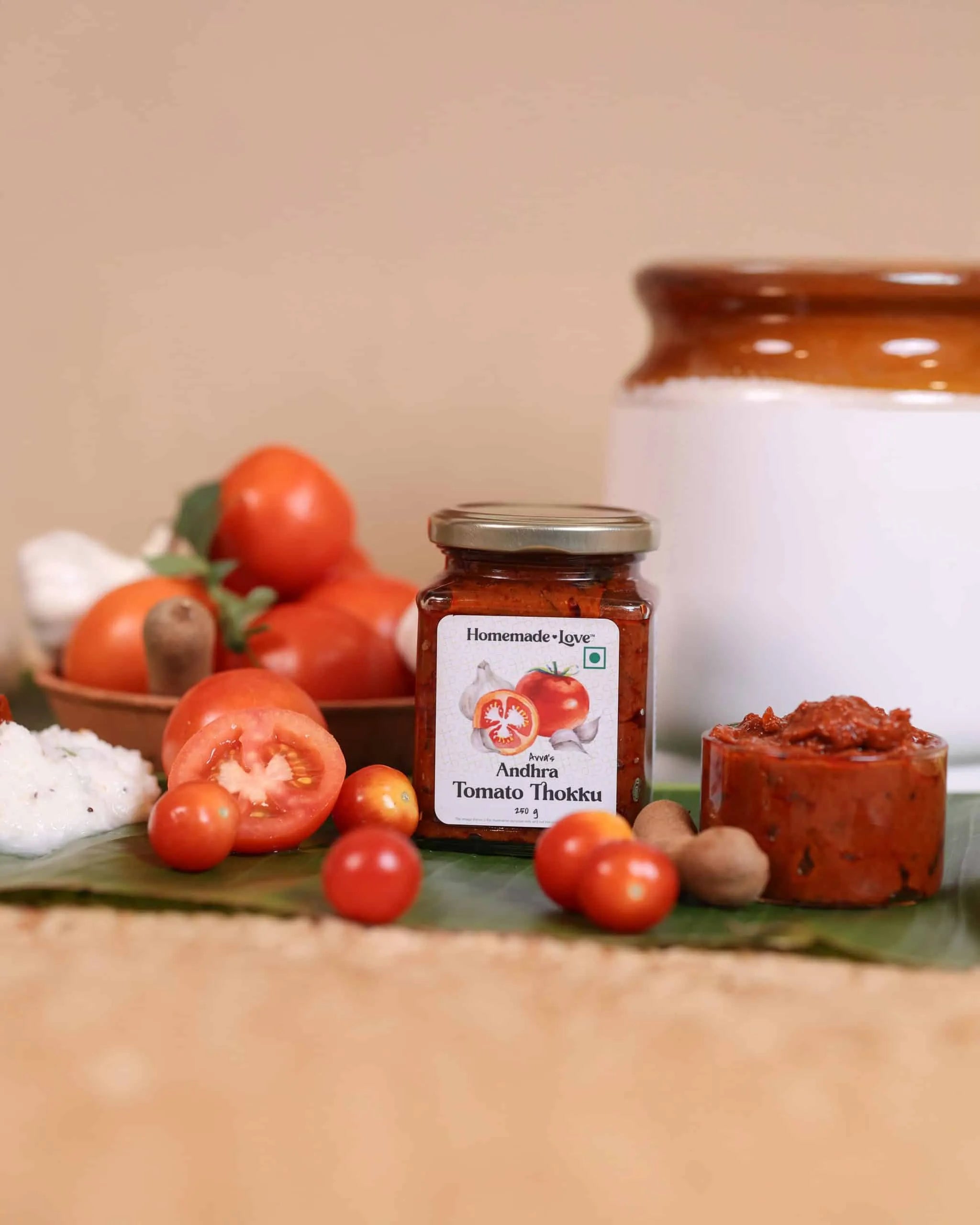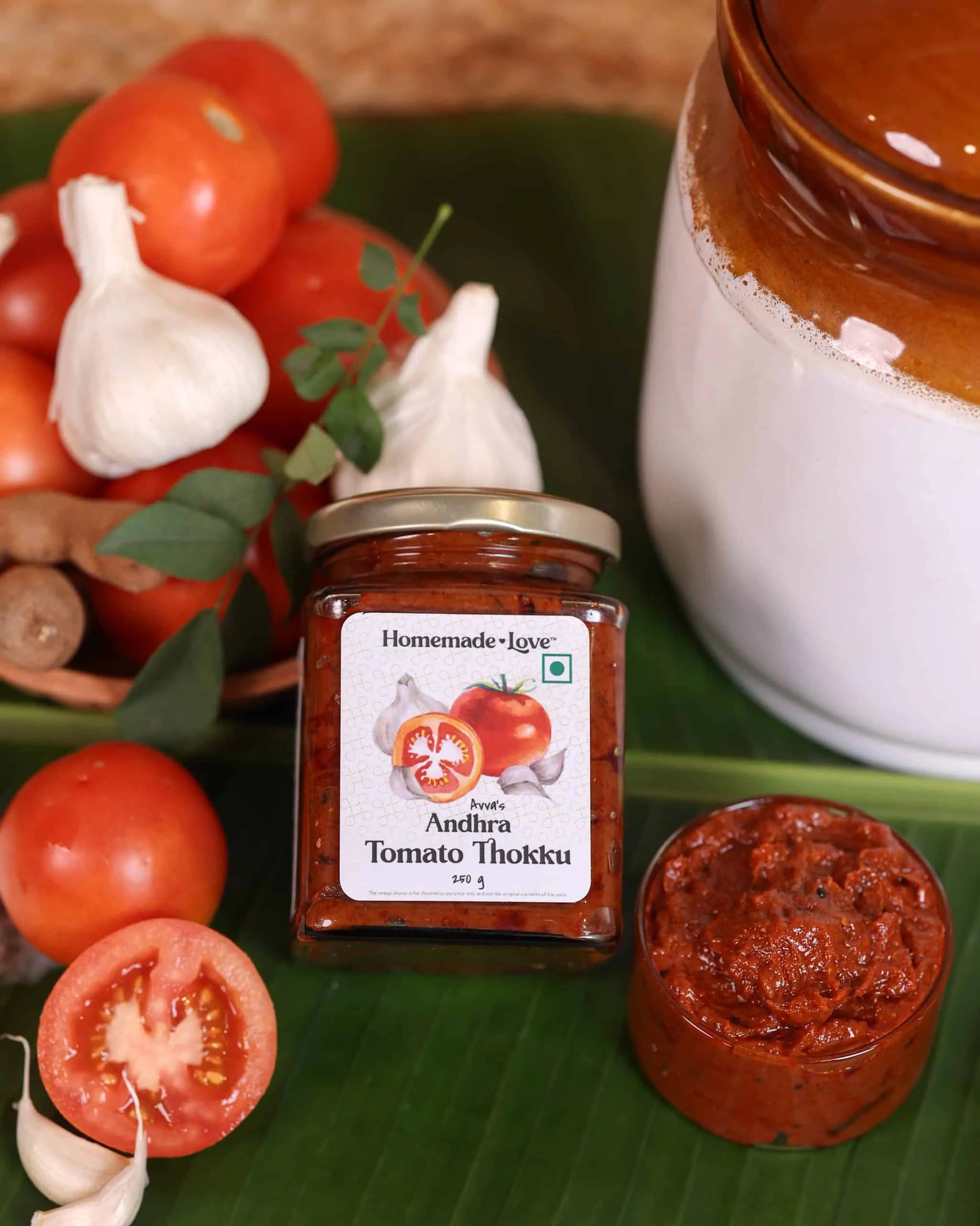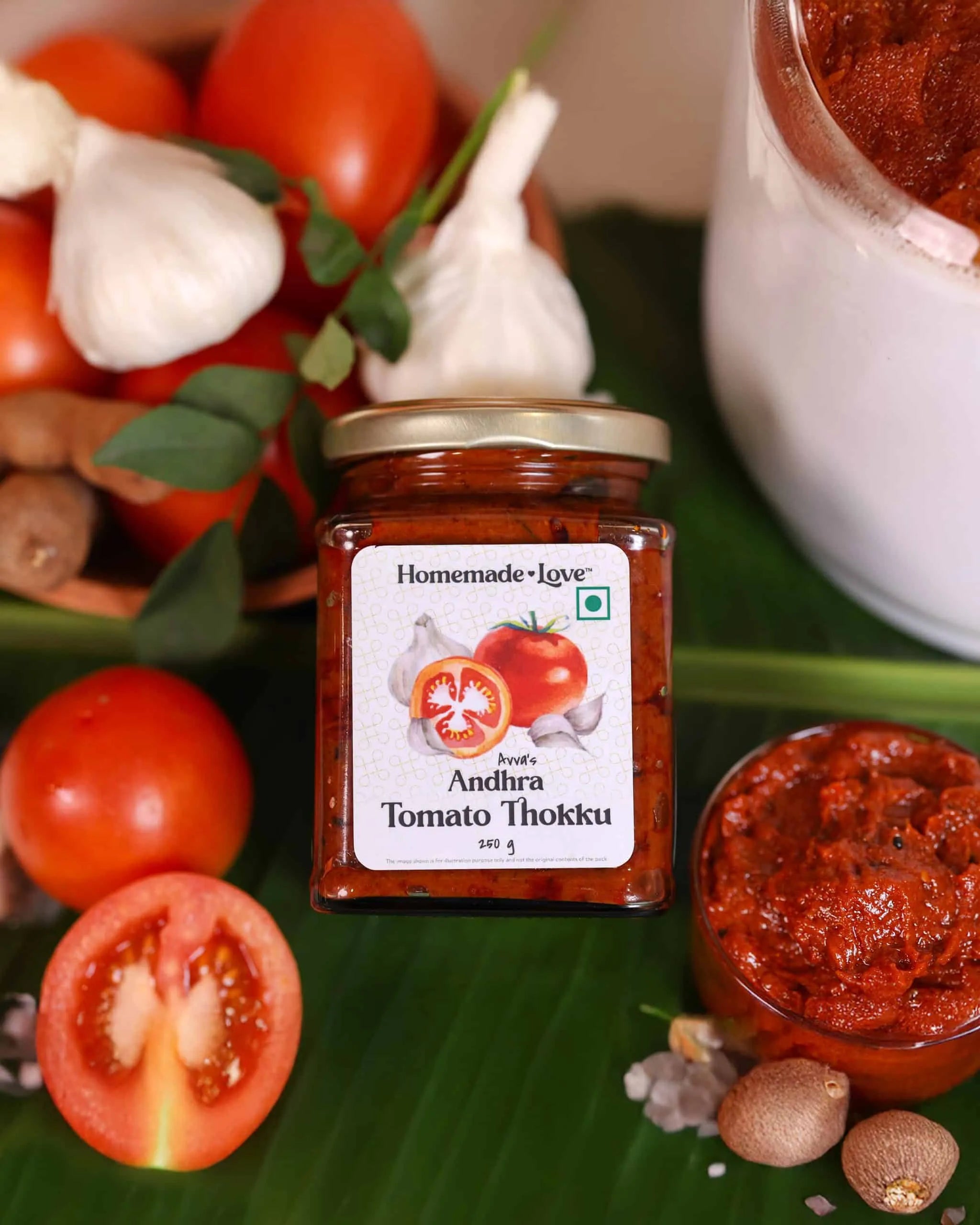 Indulge in the rich and tangy flavors of Homemade Love’s Andhra Tomato Thokku with Garlic. This classic South Indian condiment combines sun-ripened tomatoes, fresh garlic, and a medley of spices to create a delightful burst of flavors that complement any meal. Perfectly balanced with a tangy, spicy, and savory profile, it’s a pantry essential for food lovers.